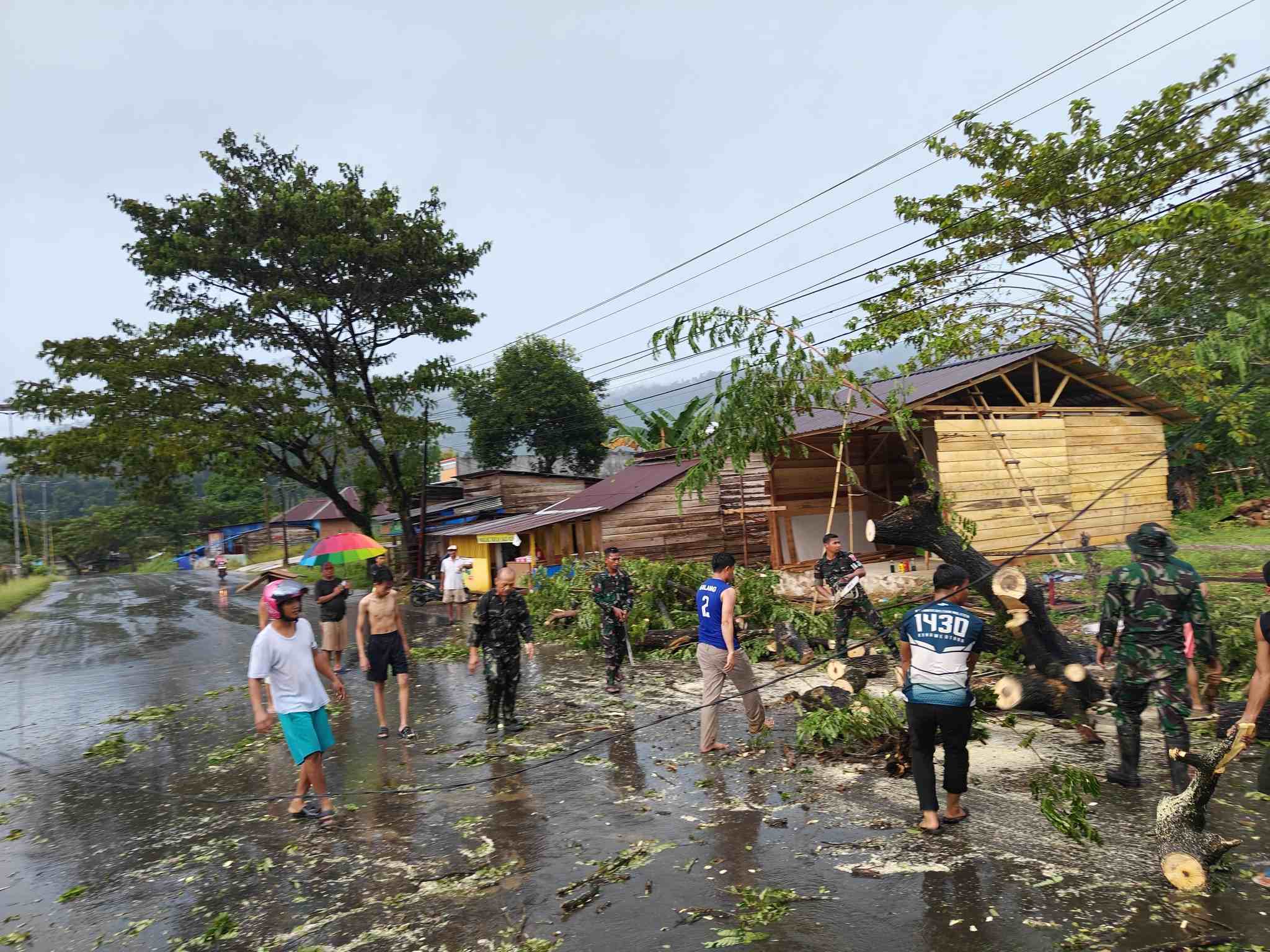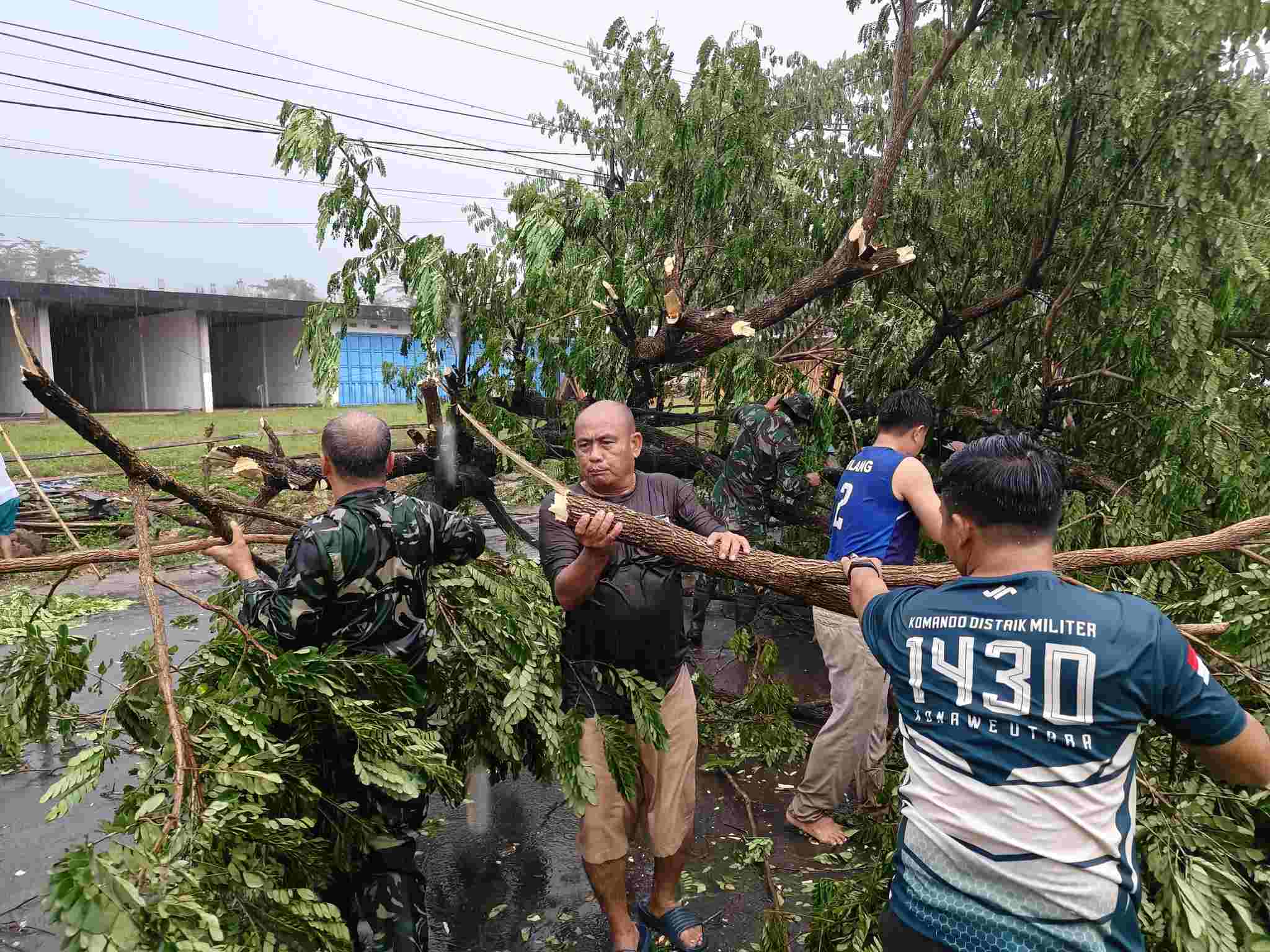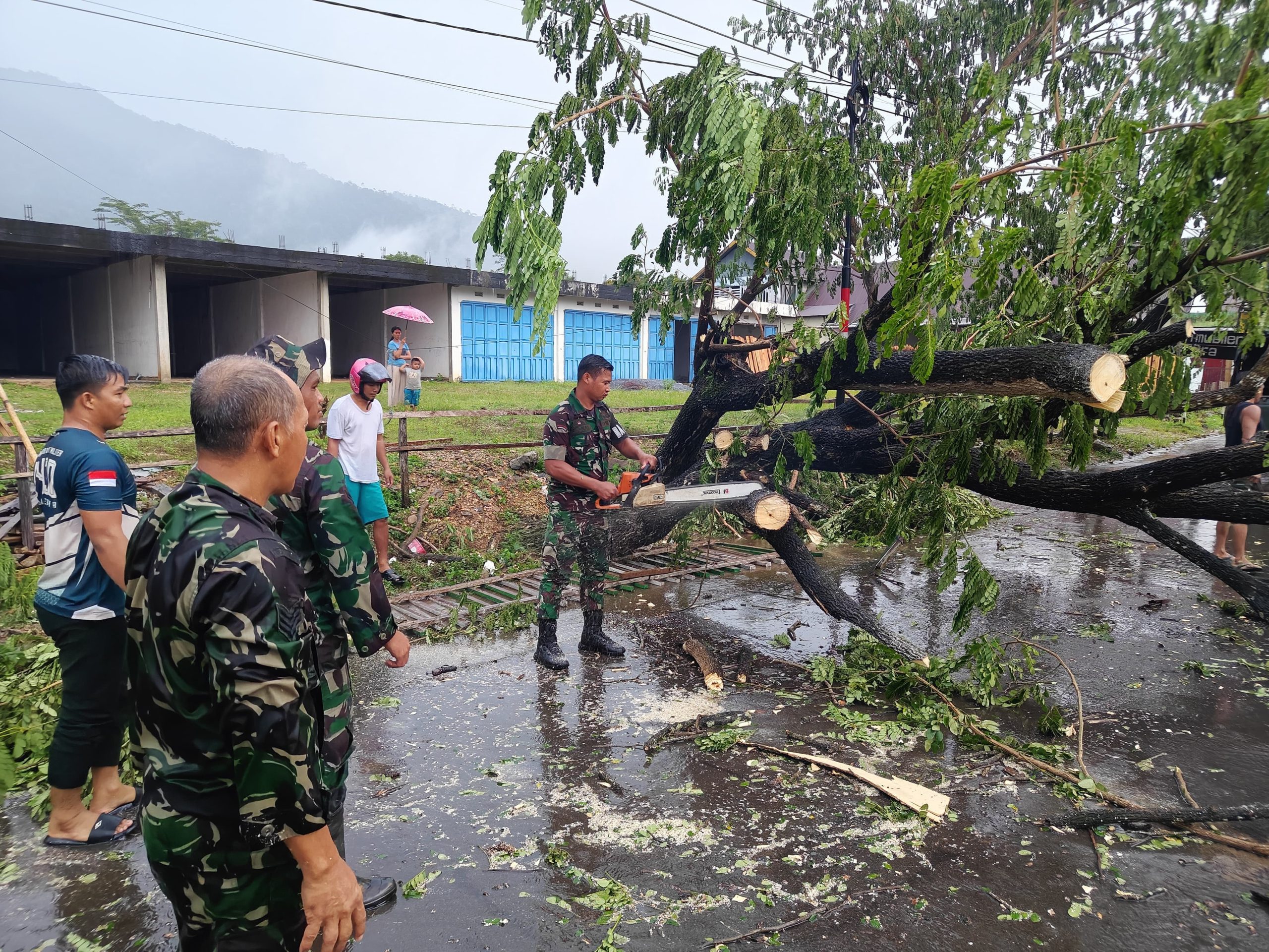 Aksi Prajurit Kodim 1430/Konut Bersihkan Pohon Tumbang Saat Hujan Badai