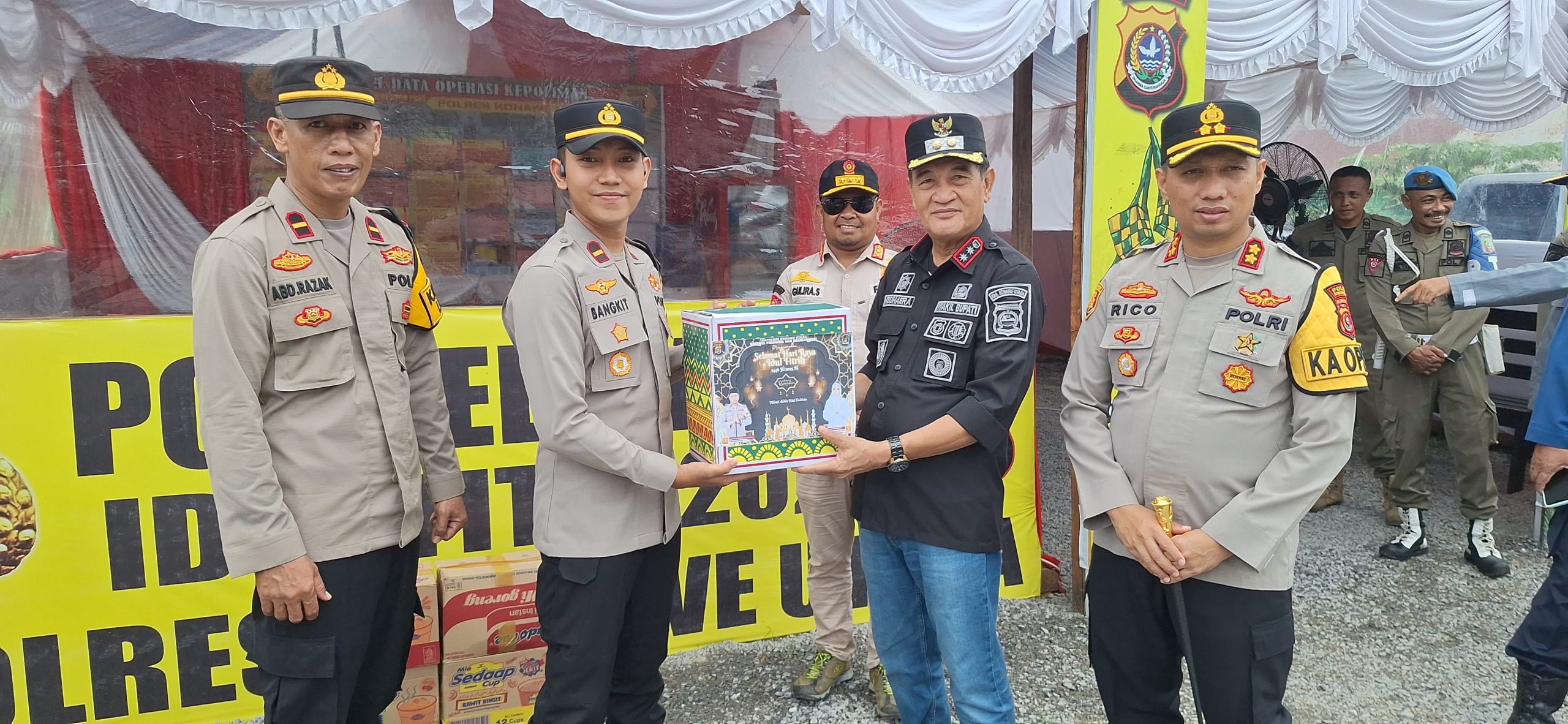 Guna meninjau pelayanan masyarakat yang melaksanakan mudik Kapolres Konawe utara AKBP Rico Fernanda, S.H., S.I.K., M.H bersama Wakil Bupati H. Abu Haera, S.Sos., M.Si didampingi PJU Polres dan Kepala OPD meninjau langsung Pos pelayanan lebaran Idul Fitri 1446 Hijriah pada Sabtu (29/03/2025).