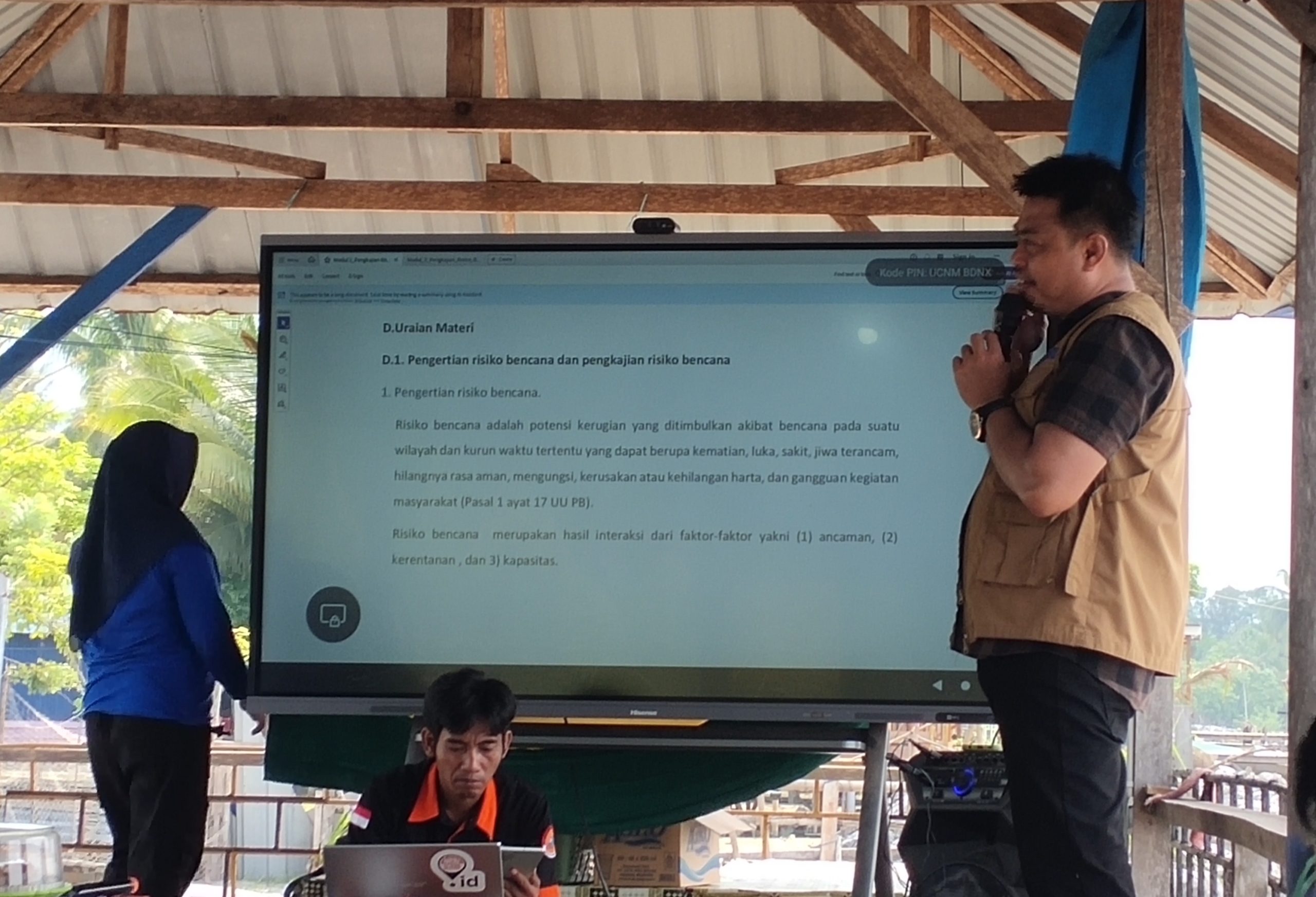 Dikatakan, dalam kegiatan ini juga , kami dari tim fasilitator memberikan materi Pengkajian Resiko Bencana Partisipatif dimana proses pengkajian resiko bencana melibatkan partisipasi aktif masyarakat dan pemangku kepentingan lainnya dalam mengidentifikasi, menganalisis, dan mengevaluasi resiko bencana.