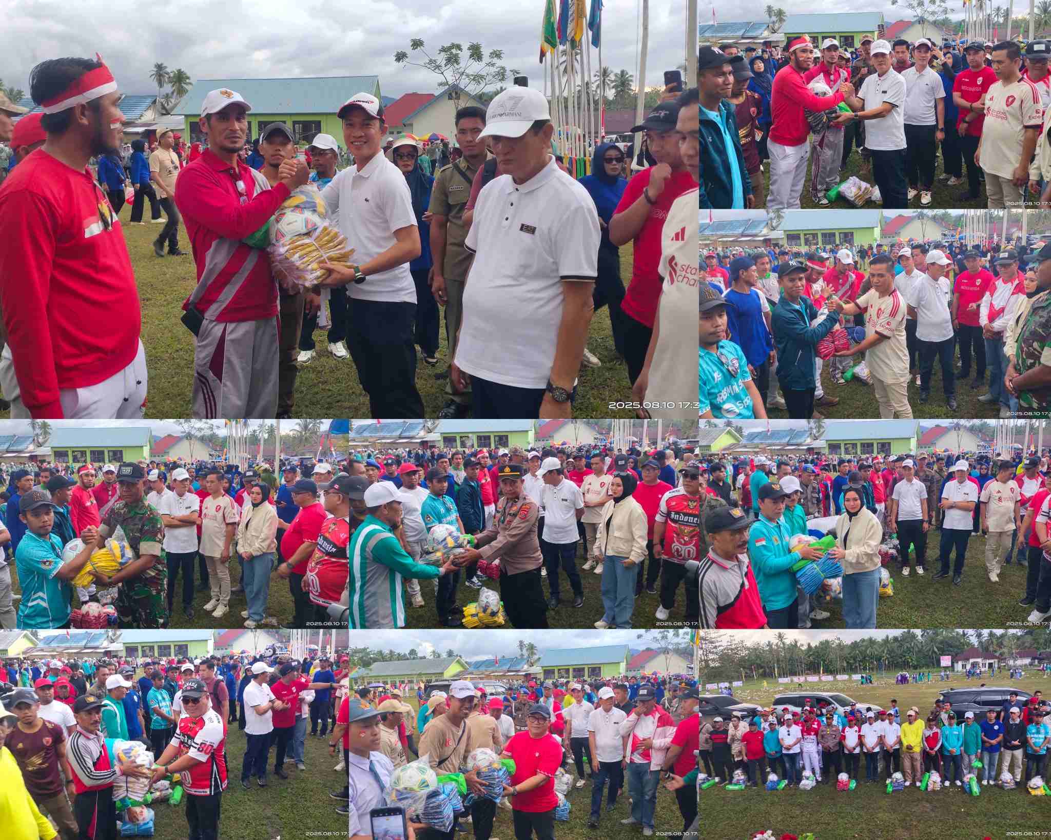 Sebagai bentuk dukungan nyata terhadap pembinaan olahraga di tingkat desa, Bupati Ikbar menyerahkan bantuan seragam olahraga kepada masing-masing kepala desa se-Kecamatan Lembo. Penyerahan ini disaksikan langsung oleh Wakil Bupati Abuhaera, Ketua DPRD Herman Sewani, serta para hadirin yang memadati area lapangan.