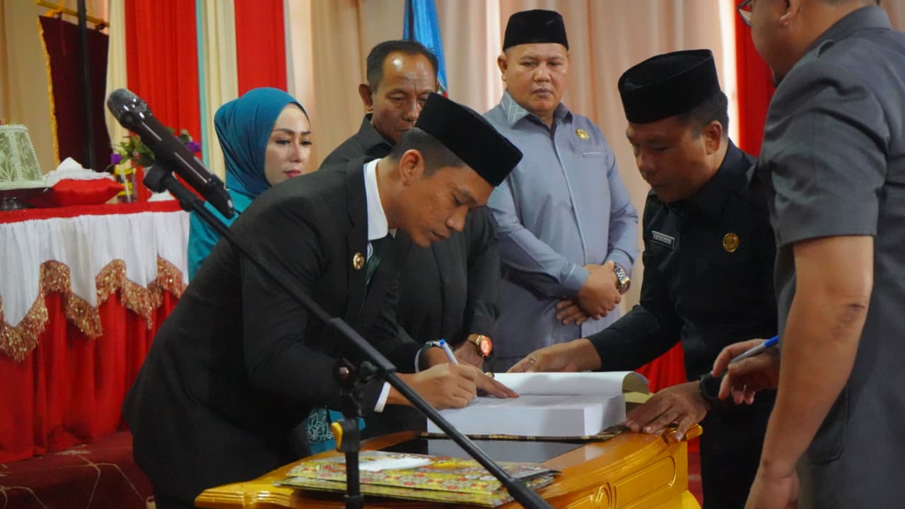 Acara diawali dengan penandatanganan Laporan Pertanggungjawaban Pelaksanaan APBD T.A. 2024 dan RPJMD 2025-2029 oleh Bupati H. Ikbar bersama Sekretaris Daerah Dr. Safruddin.