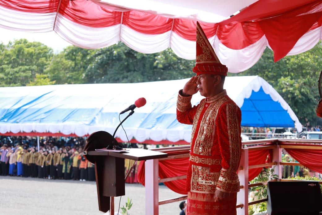 Anoapos.com | Konut– Bupati Konawe Utara (Konut) H. IKbar, SH., MH, mendampingi Gubernur Sulawesi Tenggara (Sultra) Andi Sumangerukka memimpin Upacara Hari Ulang Tahun (HUT) ke-19 Kabupaten Konawe Utara yang berlangsung khidmat di Lapangan Upacara Kantor Bupati Konawe Utara pada Jumat (02/01/2026).