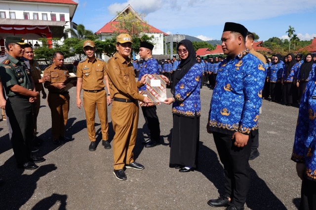 Dalam sambutannya, Bupati Ikbar menyampaikan apresiasi sekaligus ucapan selamat kepada seluruh pegawai yang baru saja menerima SK.
