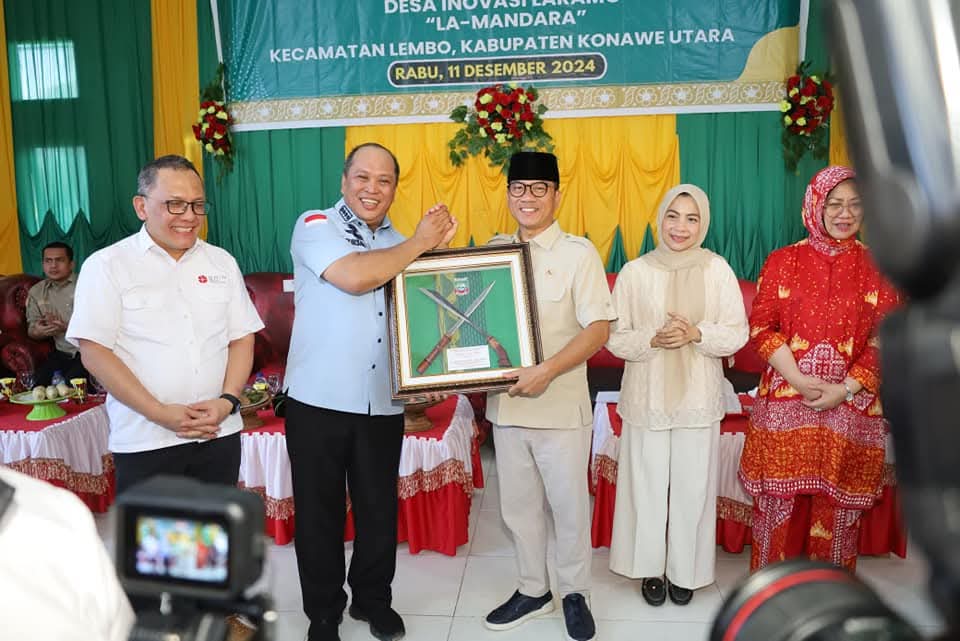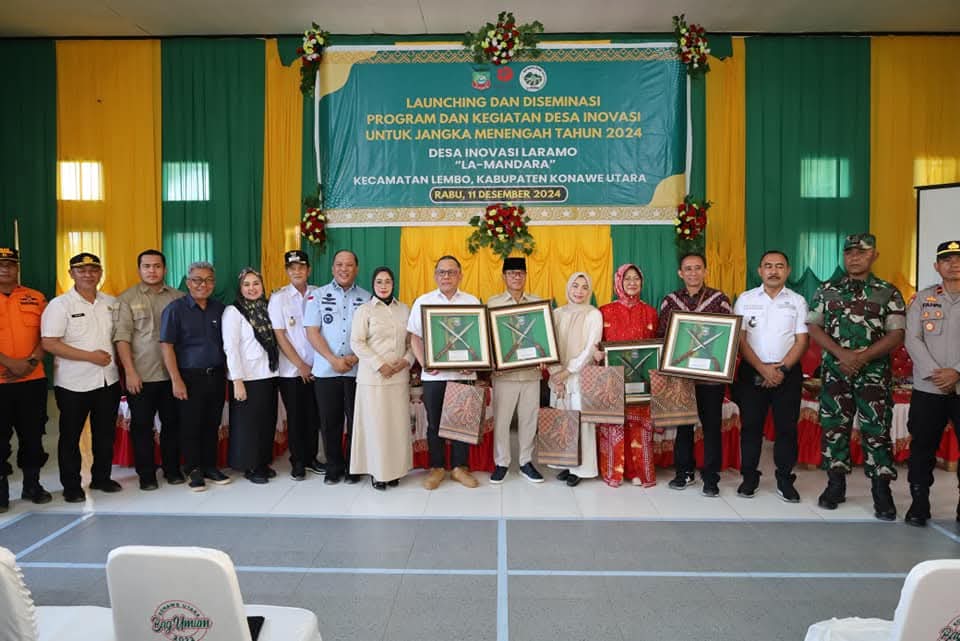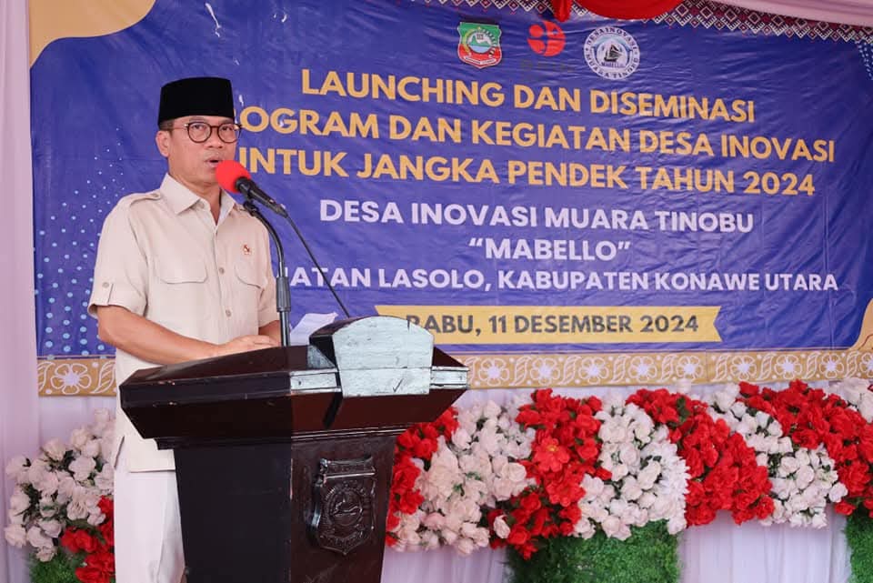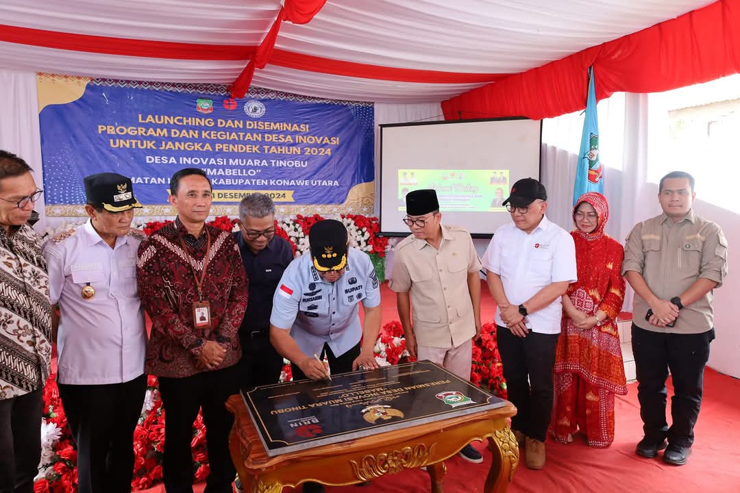 H. Yandri Susanto , S.Pt, M.Pd melauncing Desa Muara Tinobu, Kecamatan Lasolo,Desa Laramo kecamatan Lembo Kabupaten Konawe Utara (Konut) menjadi Desa Inovasi jangka pendek pada Rabu (11/12/2024).