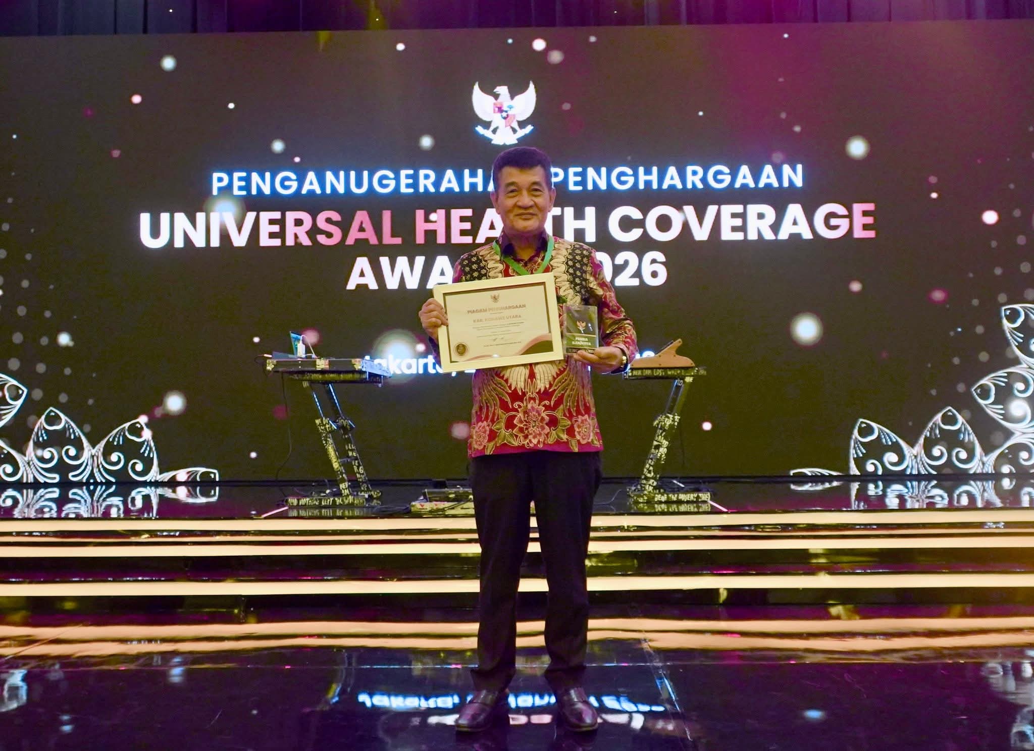 Penghargaan UHC Award diterima langsung oleh Wakil Bupati Konawe Utara, H. Abuhaera, yang hadir mewakili Bupati Konawe Utara.