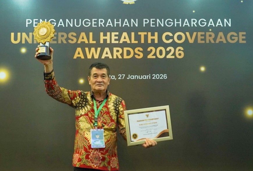 Anoapos.com | Jakarta – Kabupaten Konawe Utara (Konut) Provinsi Sulawesi Tenggara (Sultra) dibawah kepemimpinan Bupati , H. Ikbar, SH., MH, bersama Wakil Bupati H. Abuhaera, S.Sos., M.Si, Pemerintah Kabupaten Konawe Utara kembali menorehkan prestasi di tingkat nasional dengan meraih Penghargaan Universal Health Coverage (UHC) Award 2026 Kategori Utama.