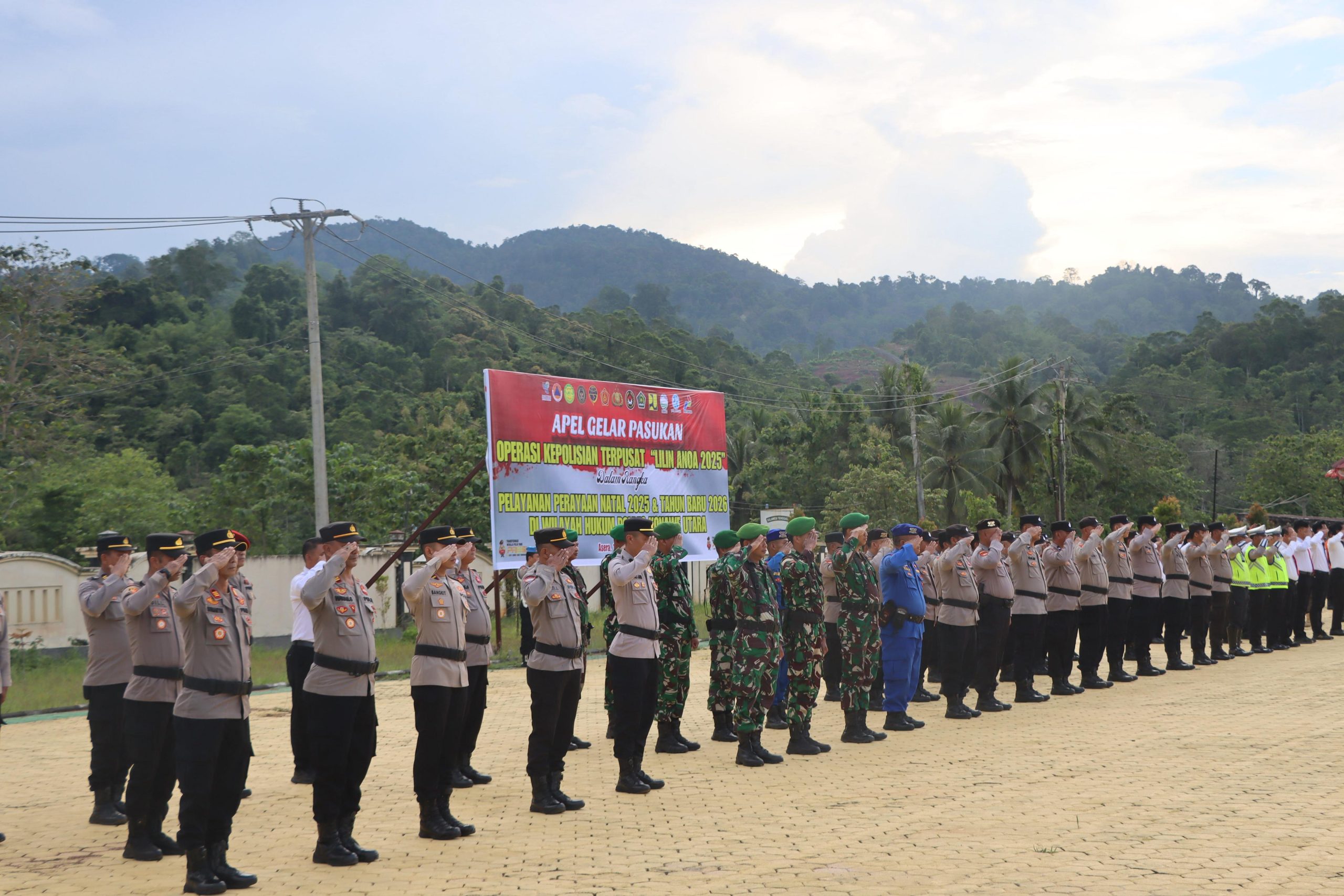 Anoapos.com | Konut – Dandim 1430/Konawe Utara Letkol Kav Kuswara, S.I.P. menghadiri sekaligus mengikuti Apel Gelar Pasukan Operasi Lilin Anoa–2025 dalam rangka pengamanan Perayaan Natal Tahun 2025 dan Tahun Baru 2026, yang diselenggarakan oleh Polres Konawe Utara (Polres Konut).