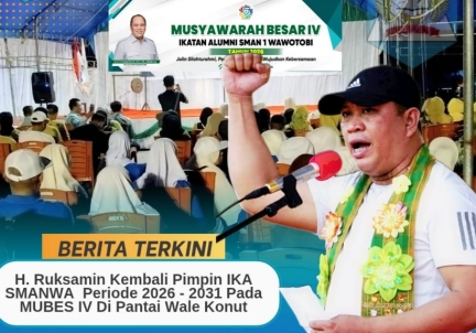 Anoapos.com | Konut – Musyawarah Besar (Mubes) IV Ikatan Alumni SMA Negeri Wawotobi (IKA SMANWA) yang dilaksanakan di Pantai Wale Desa Ulu Sawa Kecamatan Sawa Kabupaten Konawe Utara (Konut) Provinsi Sulawesi Tenggara (Sultra), berlangsung sukses dan penuh kebersamaan. Dalam kegiatan tersebut, H. Ruksamin tetap kembali terpilih dan memimpin IKA SMANWA untuk periode selanjutnya.