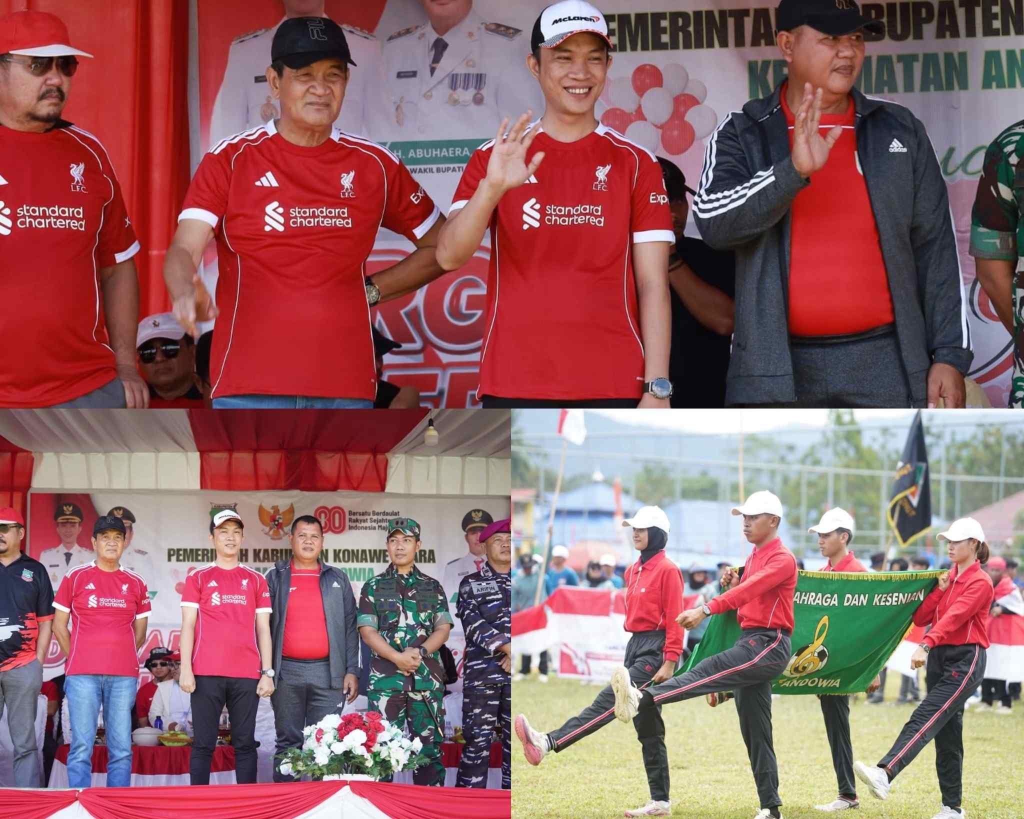 Untuk diketahui, pembukaan kegiatan Porseni tersebut ditandai dengan penampilan barisan defile peserta dari seluruh desa dan kelurahan di Kecamatan Andowia, penampilan seni tradisional, dan pertandingan eksebisi cabang olahraga populer seperti sepak bola, voli, dan bulu tangkis. Dan sebelum meninggalkan lokasi kegiatan, Bupati bersama Wakil Bupati Konut, Setda dan Forkopimda secara bergantian menyerahkan bantuan seragam olahraga kepada seluruh Kades dan Lurah se-Kecamatan Andowia.