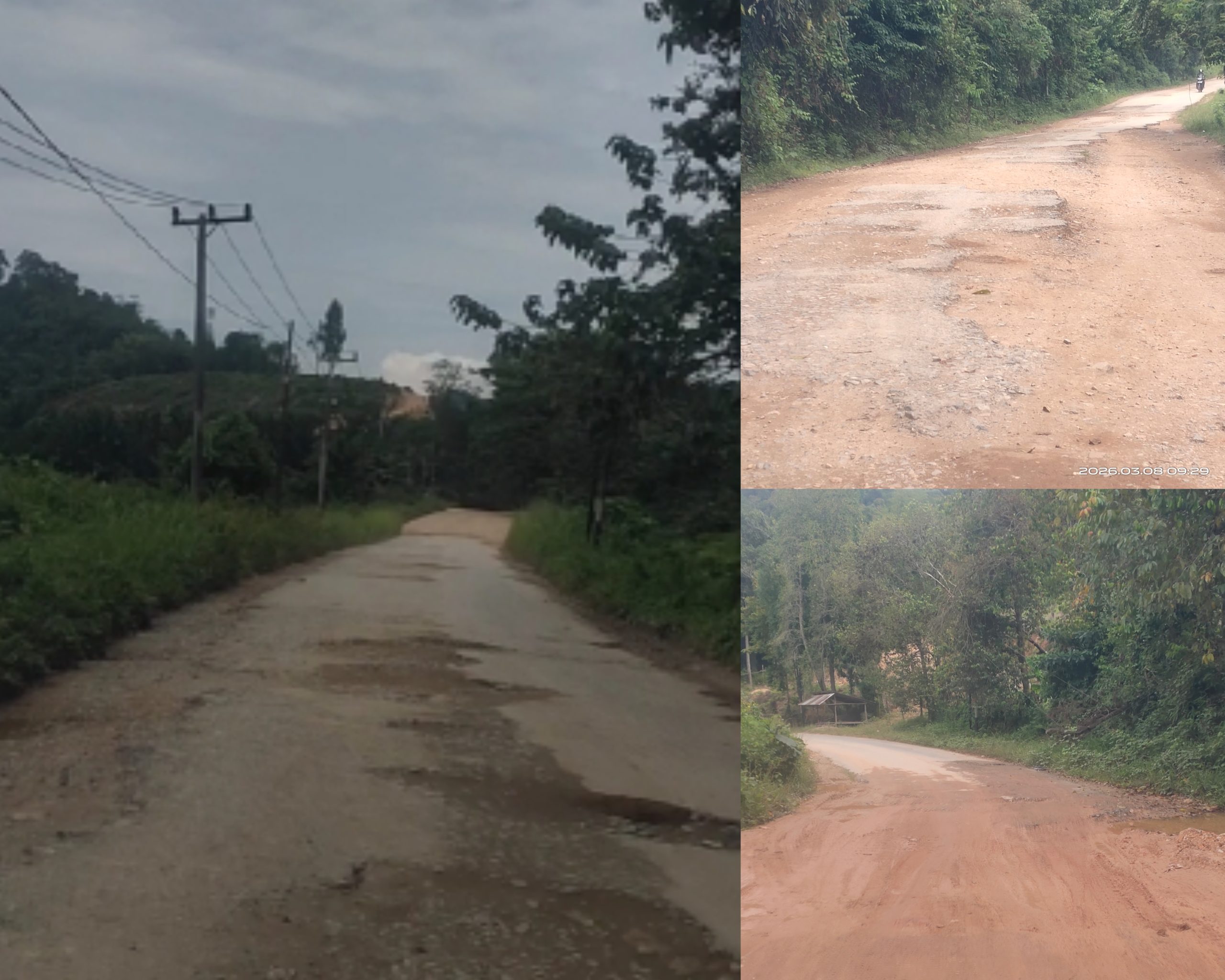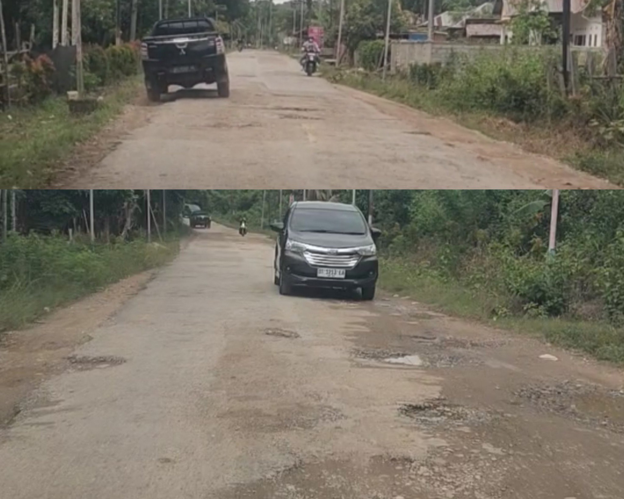 Dari pantauan warga dan media, badan jalan dipenuhi lubang di sejumlah titik. Saat musim hujan, lubang-lubang tersebut tertutup genangan air sehingga membahayakan pengendara roda dua maupun roda empat yang melintas.