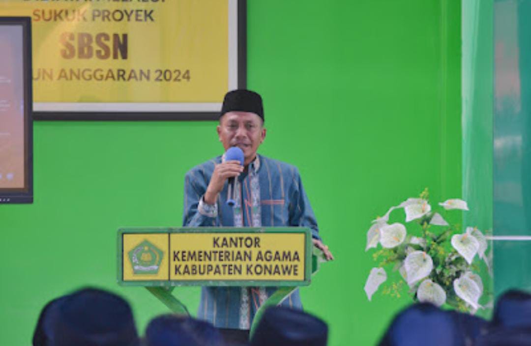 Kepala Kantor Wilayah (Kanwil) Kemenag Provinsi Sulawesi Tenggara H. Muhamad Saleh saat menyampaikan sambutannya menyatakan bahwa menyambut baik kehadiran Laboratorium Terpadu dan Perpustakaan MAN 1 Konawe ini.