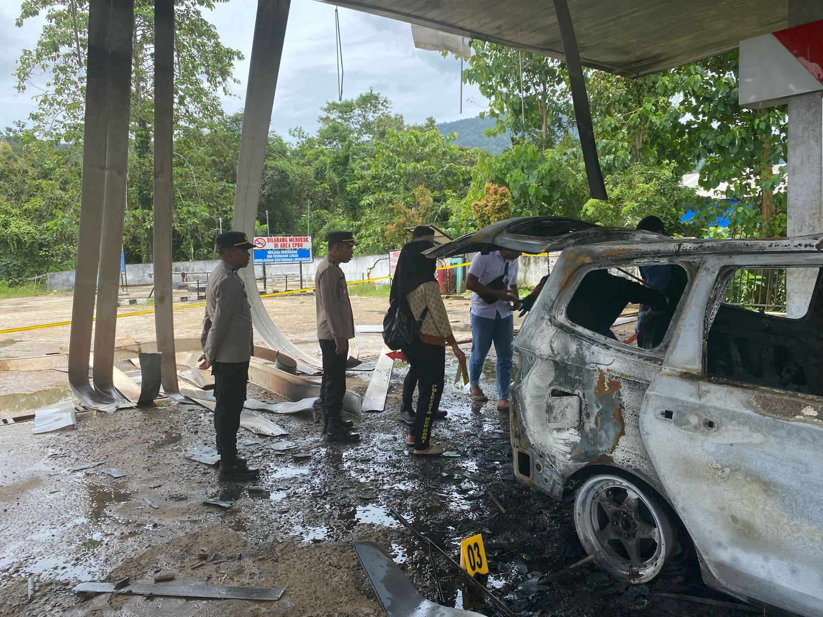 Polres Konawe Utara telah melakukan olah tempat kejadian perkara (TKP) dan mengamankan barang bukti berupa mobil Wuling DD 1528 VJ serta sepeda motor Honda tanpa identitas yang ikut terbakar.
