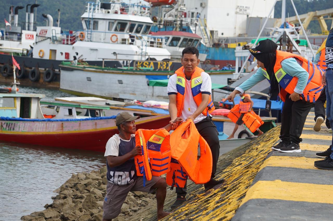Salah satu poin yang dilaksanakan KUPP Lapuko untuk mengurangi resiko adalah membagikan Life Jacket keselamatan kepada para nelayan dan crew kapal penumpang tradisional di wilayah tugasnya.