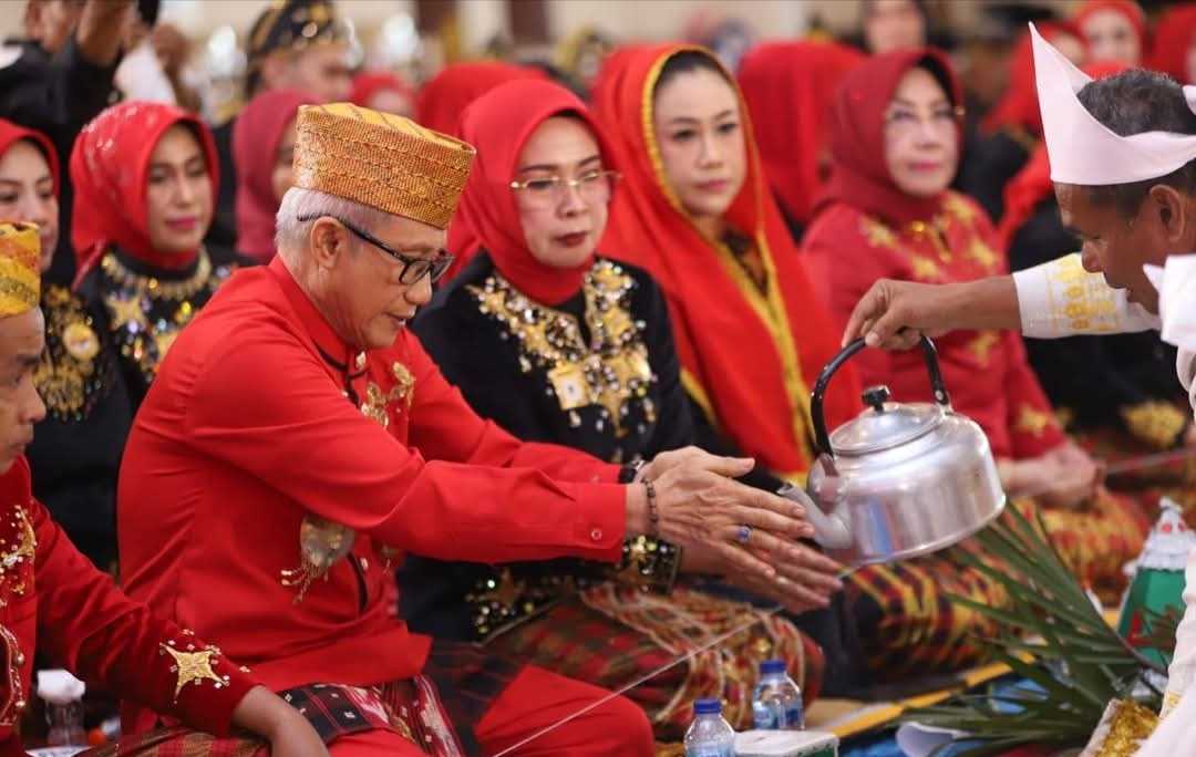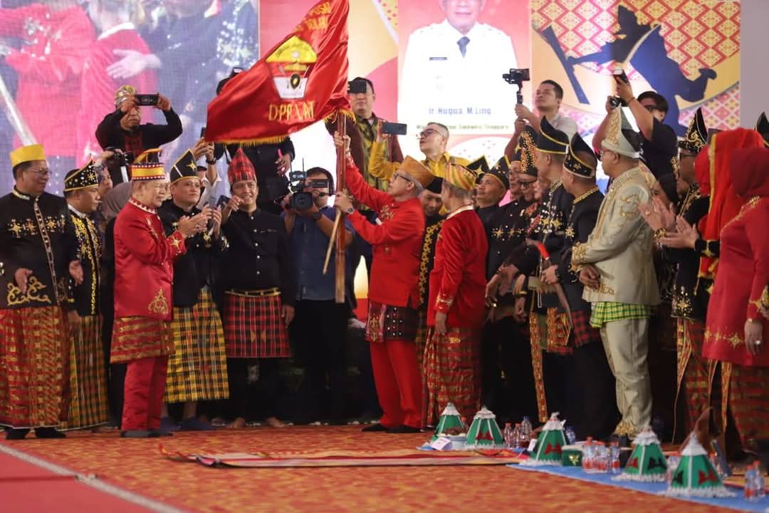 Acara sakral ini dihadiri Wakil Gubernur Sultra, Ir. Hugua, M.Ling., mewakili Gubernur Sultra, Mayjen TNI (Purn) Andi Sumangerukka di ruang salah satu room hotel di Kota Kendari pada Sabtu (12/07/2025).