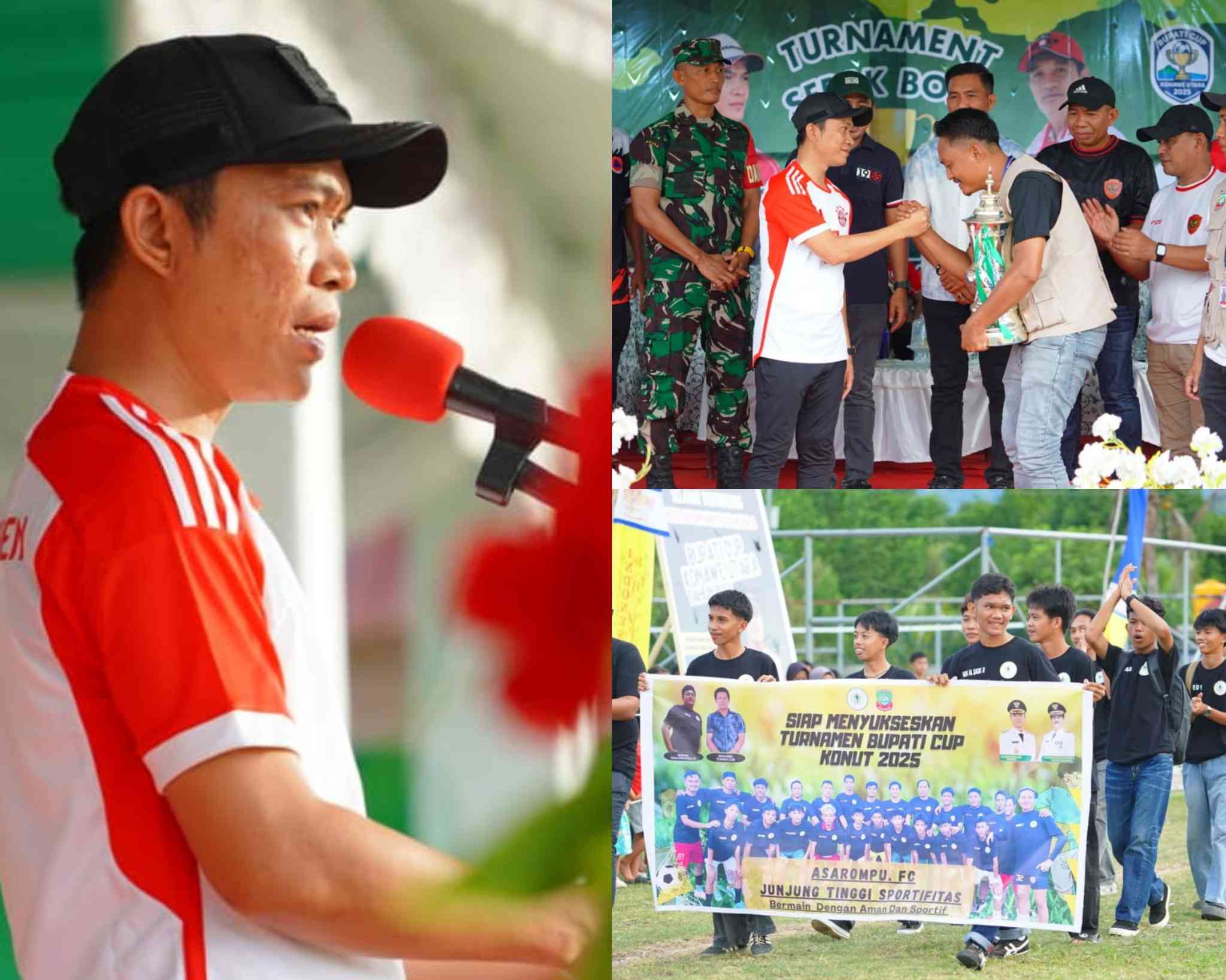 Untuk diketahui dalam kegiatan pembukaan Turnament Sepak Bola Bupati Cup Konawe Utara Tahun 2025 ini, Bupati Konawe Utara H. Ikbar, S.H., M.H. juga menyerahkan secara simbolis Piala Bergilir dan Bola Kaki tanda Turnament sudah dapat dilaksanakan.