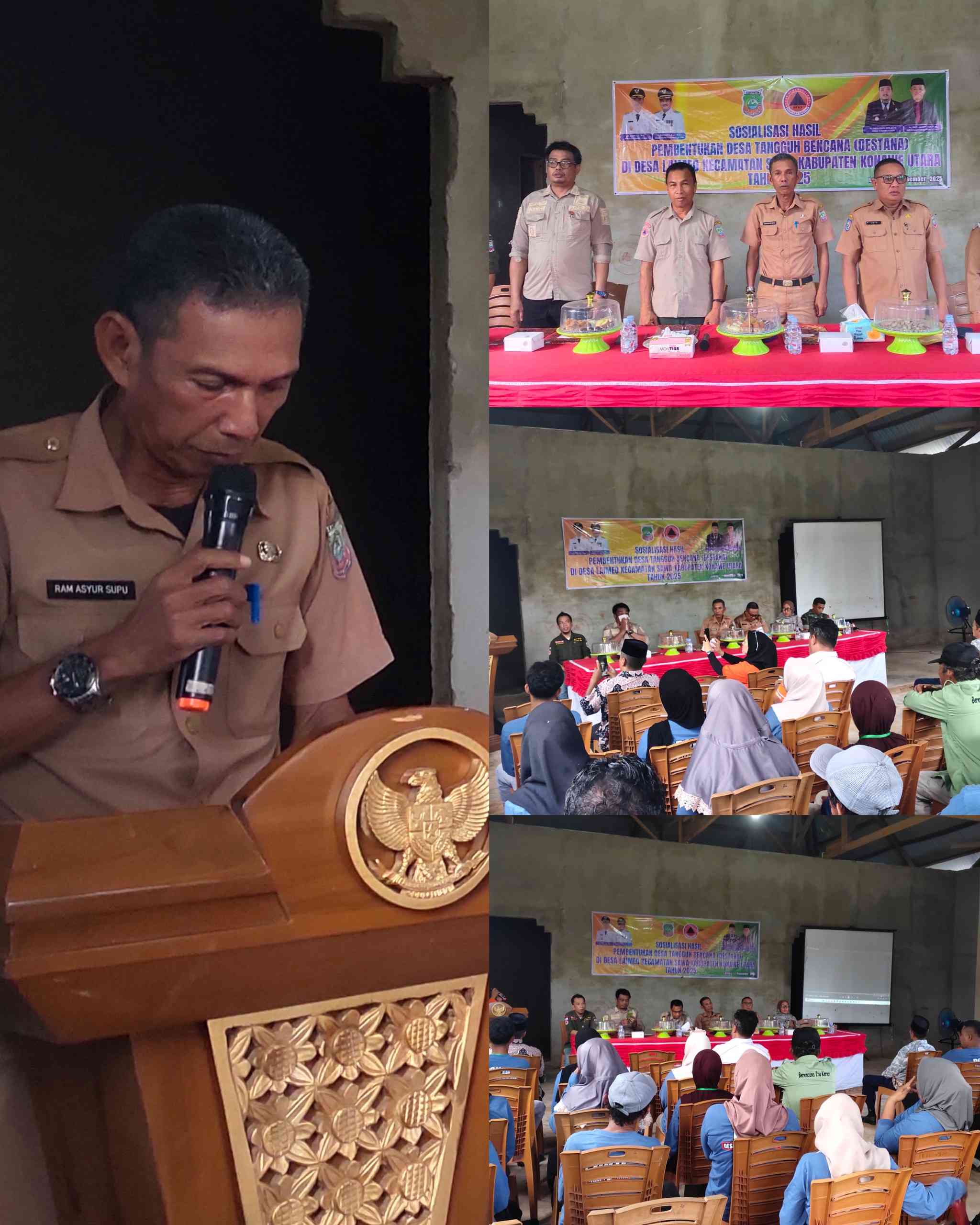 ” Sosialisasi hasil Pembentukan Desa Tangguh Bencana (Destana) di Desa Laimeo bertujuan untuk memperkenalkan konsep, tujuan, dan pentingnya program Destana, serta peran vital relawan di dalamnya,” kata Ram Asyur Supu .