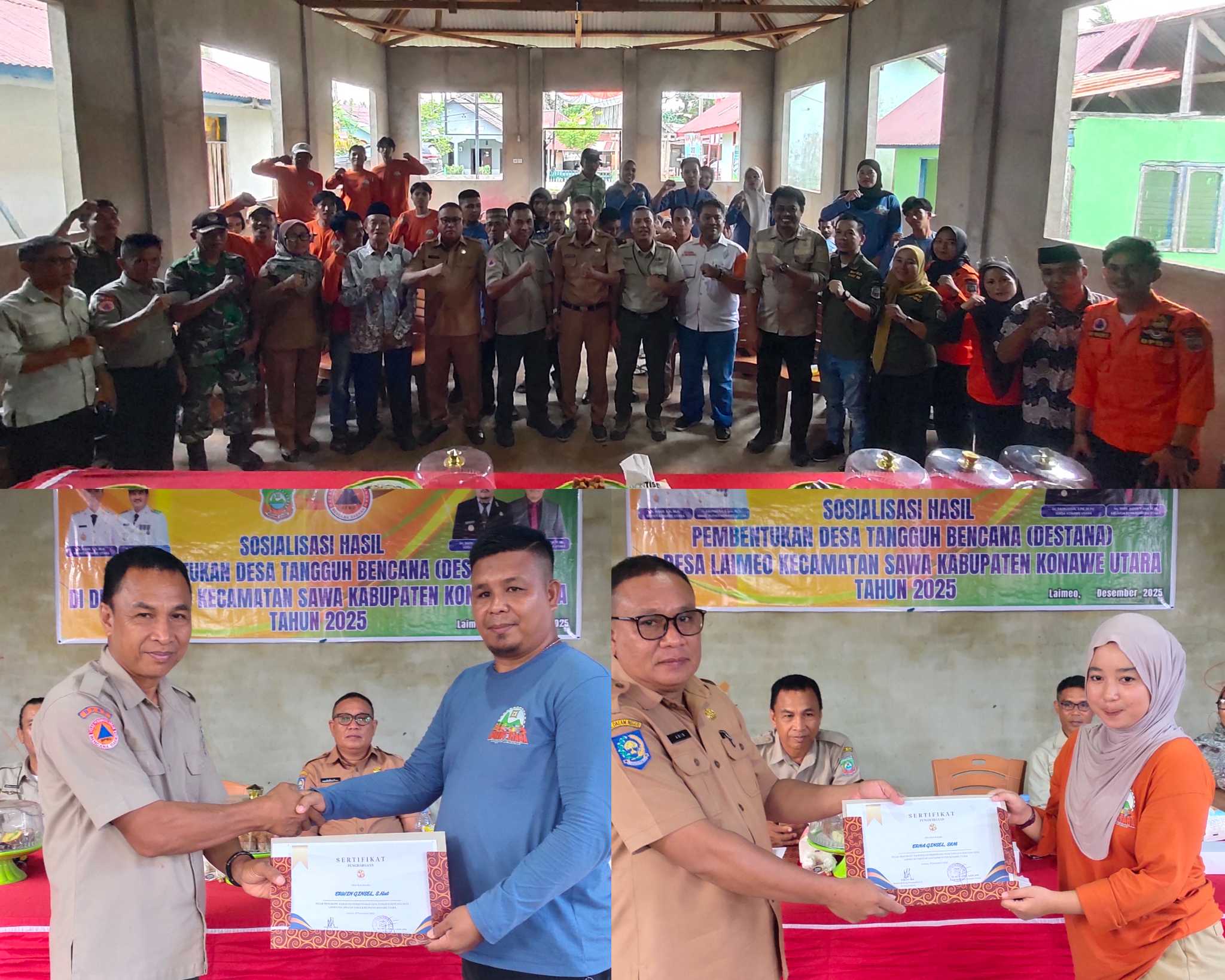 Salah satunya yaitu pelaksanaan Sosialisasi Hasil Pembentukan Desa Tangguh Bencana (DESTANA) di Desa Laimeo Kecamatan Sawa.