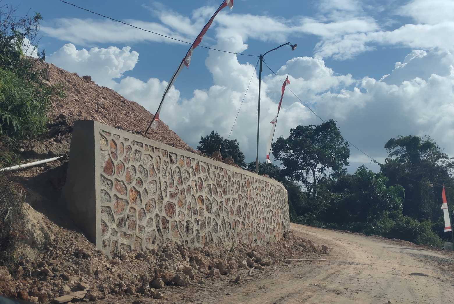 Anoapos.com | Konut – Sebagai langkah antisipatif terjadinya bencana tanah longsor, Pemerintah Desa Punggulahi Kecamatan Motui Kabupaten Konawe Utara (Konut) Provinsi Sulawesi Tenggara (Sultra) membangun dinding penahan tebing atau talud.