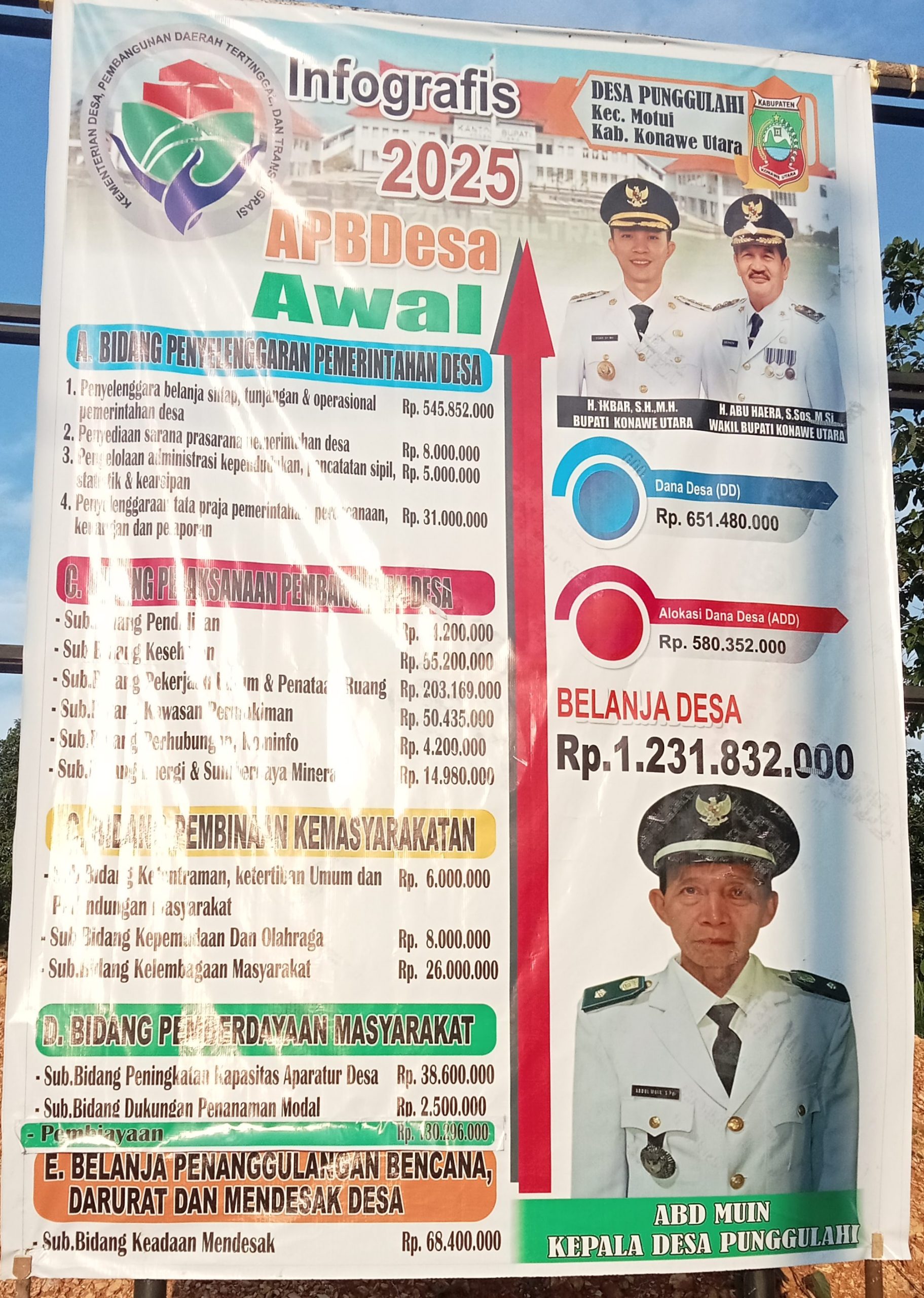 ” realisasi anggaran DD APBN dan ADD APBD sedang kami proses sesuai peruntukannya sebagaimana hasil musyawarah desa yang disepakati oleh Pemerintah Desa Punggulahi, BPD dan warga masyarakat. Pelaksanaan kegiatan pembangunan di desa ini berjalan transparan dan akuntabel,” terang Kades Punggulahi.