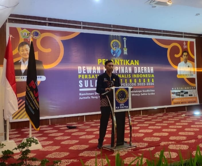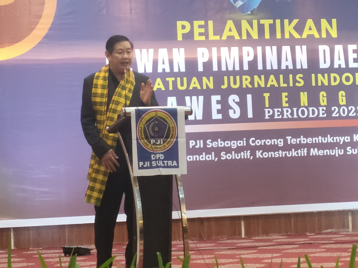 Ketgam, Ketua DPD PJI Sulawesi Tenggara, Agussalim Patunru.Anoapos.com | Kendari – Agussalim Patunru Ketua Persatuan Jurnalis Indonesia (PJI) Provinsi Sulawesi Tenggara bersama seluruh jajaran seluruh Indonesia dari berbagai media cetak serta siber, menyatakan sikap tegas atas laporan Paulus George Hung ke Polda Metro Jaya yang mengkriminalisasi Ketua Umum PJI, Hartanto Boechori. Laporan tersebut bentuk intimidasi terhadap kebebasan pers dan upaya membungkam/membredel fungsi kontrol sosial yang merupakan hak dan kewajiban pers yang dilindungi undang-undang.