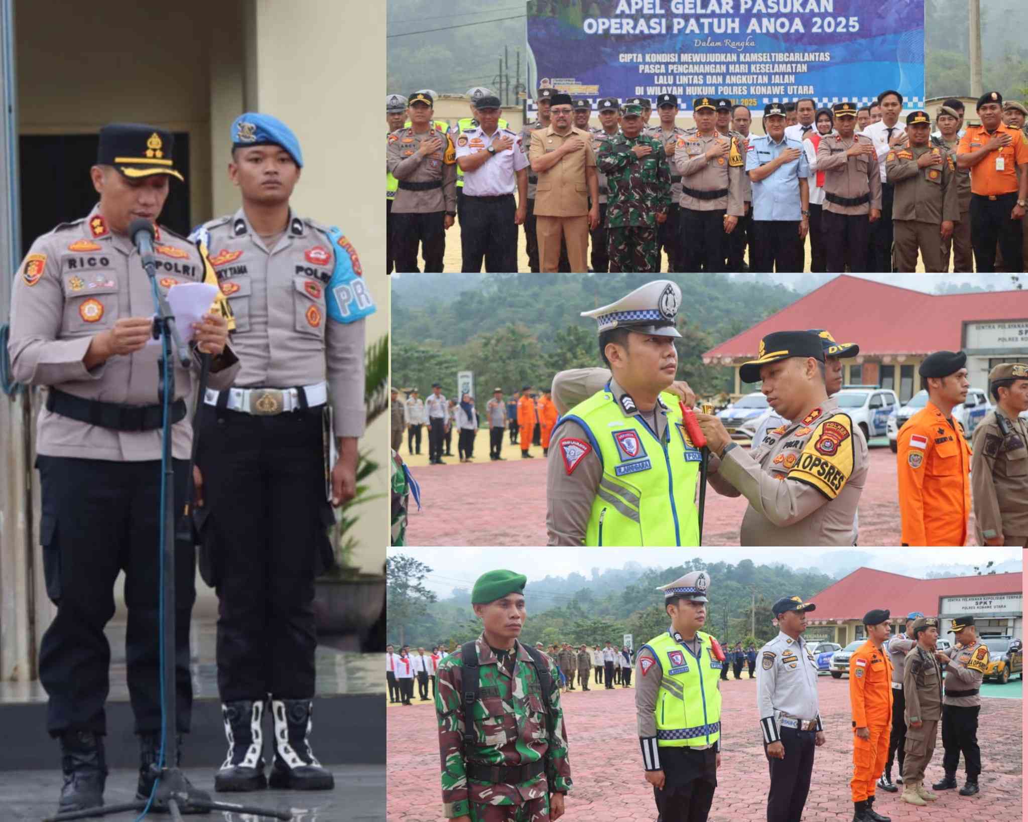 Anoapos.com | Konut – Kepala Kepolisian Resor (Kapolres) Konawe Utara (Konut) Provinsi Sulawesi Tenggara (Sultra) ,AKBP Rico Fernanda, S.H., S.I.K., M.H pimpin pelaksanaan apel gelar pasukan operasi patuh anoa 2024 bertempat di lapangan apel mapolres konawe utara pada Senin (14/07/2025).