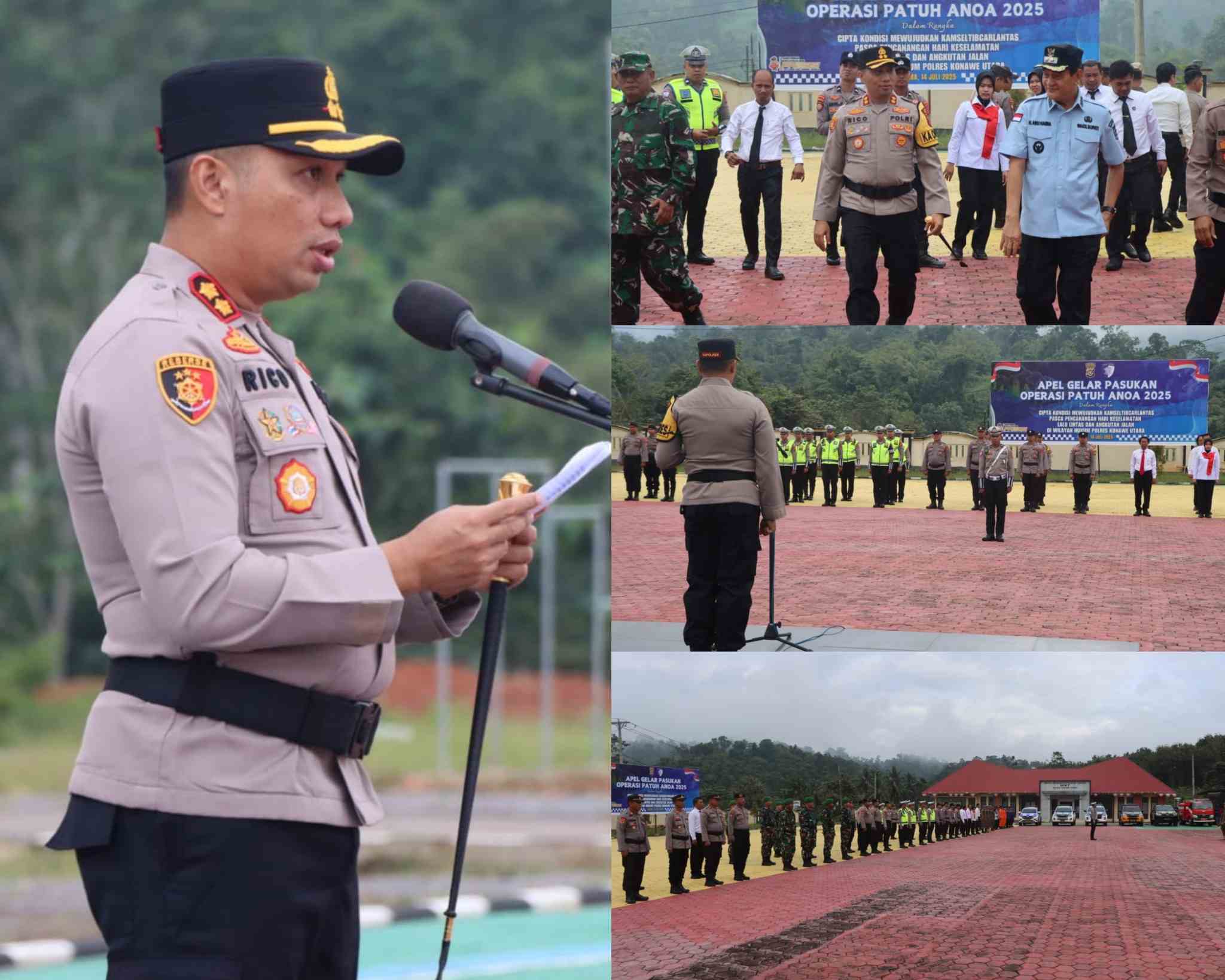 Kapolres Konut AKBP Rico Fernanda, S.H., S.I.K., M.H mengawali amanatnya mengucap puji dan syukur kepada Allah Tuhan Yang Maha Esa karena atas ridho-NYA kita bisa berkumpul guna melaksanakan apel gelar pasukan dalam rangka operasi Kepolisian kewilayahan dengan sandi “Patuh Anoa – 2025” serentak se Indonesia