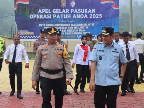 Kapolres Konut AKBP Rico Fernanda, S.H., S.I.K., M.H mengawali amanatnya mengucap puji dan syukur kepada Allah Tuhan Yang Maha Esa karena atas ridho-NYA kita bisa berkumpul guna melaksanakan apel gelar pasukan dalam rangka operasi Kepolisian kewilayahan dengan sandi “Patuh Anoa – 2025” serentak se Indonesia