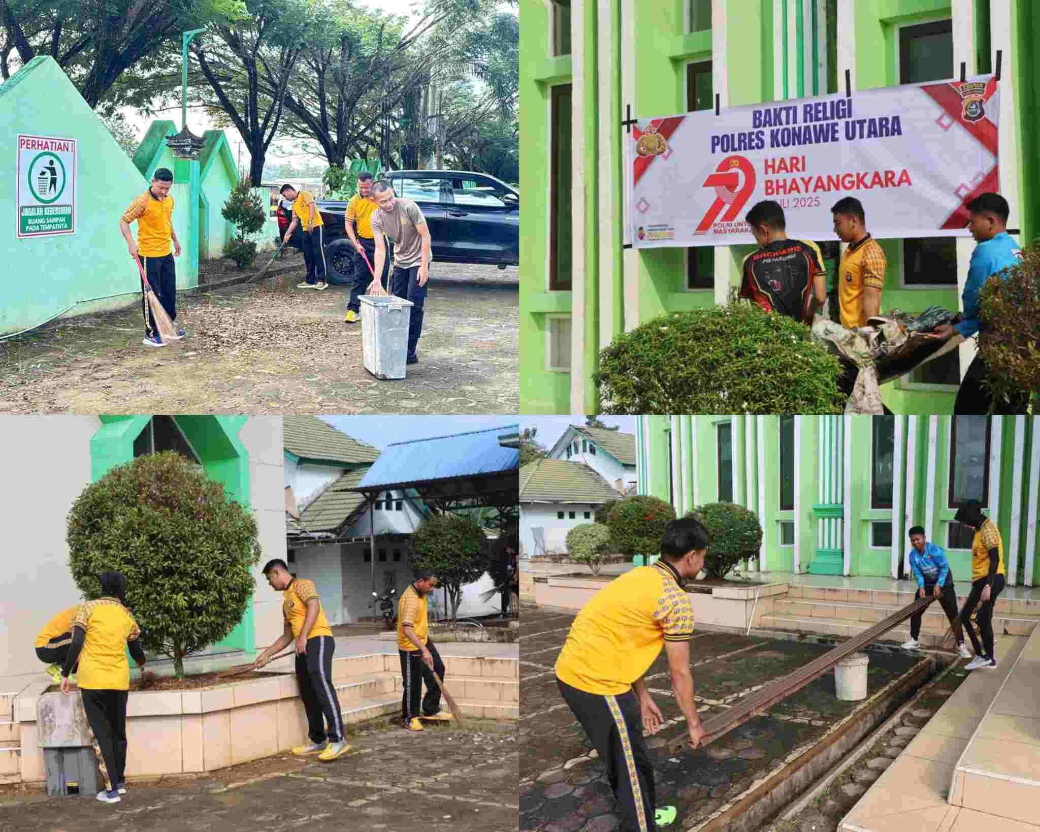 Anoapos.com | Konut — Dalam rangka menyambut hari Bhayangkara ke-79 tahun 2025, Kepolisian Resor Konawe utara melaksanakan kegiatan Bakti Religi.