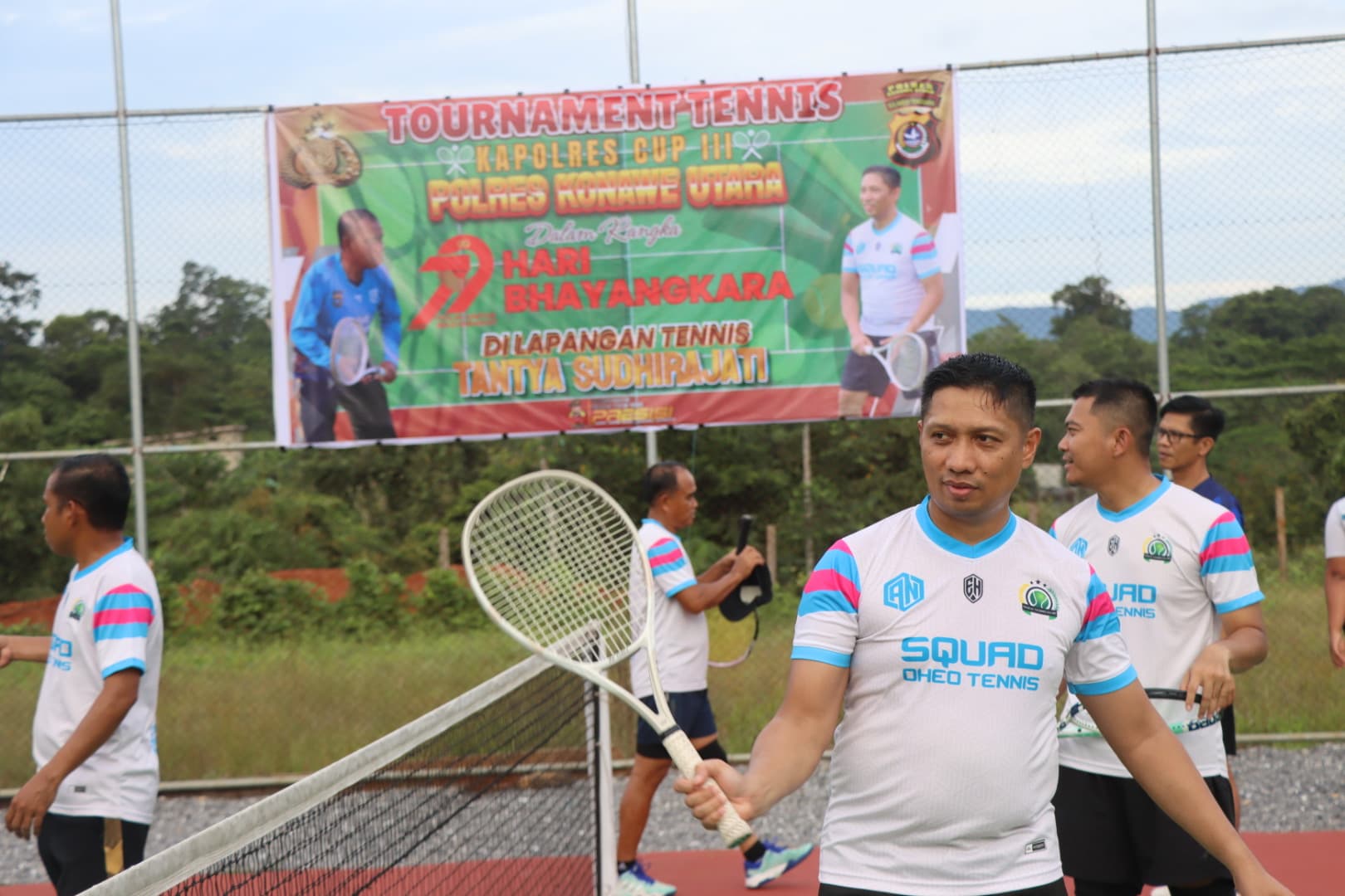 Turnamen Tennis Kapolres Cup III ini berlangsung dilapangan Tantya Sudhirajati Mapolres Konawe Utara Kelurahan Wanggudu.