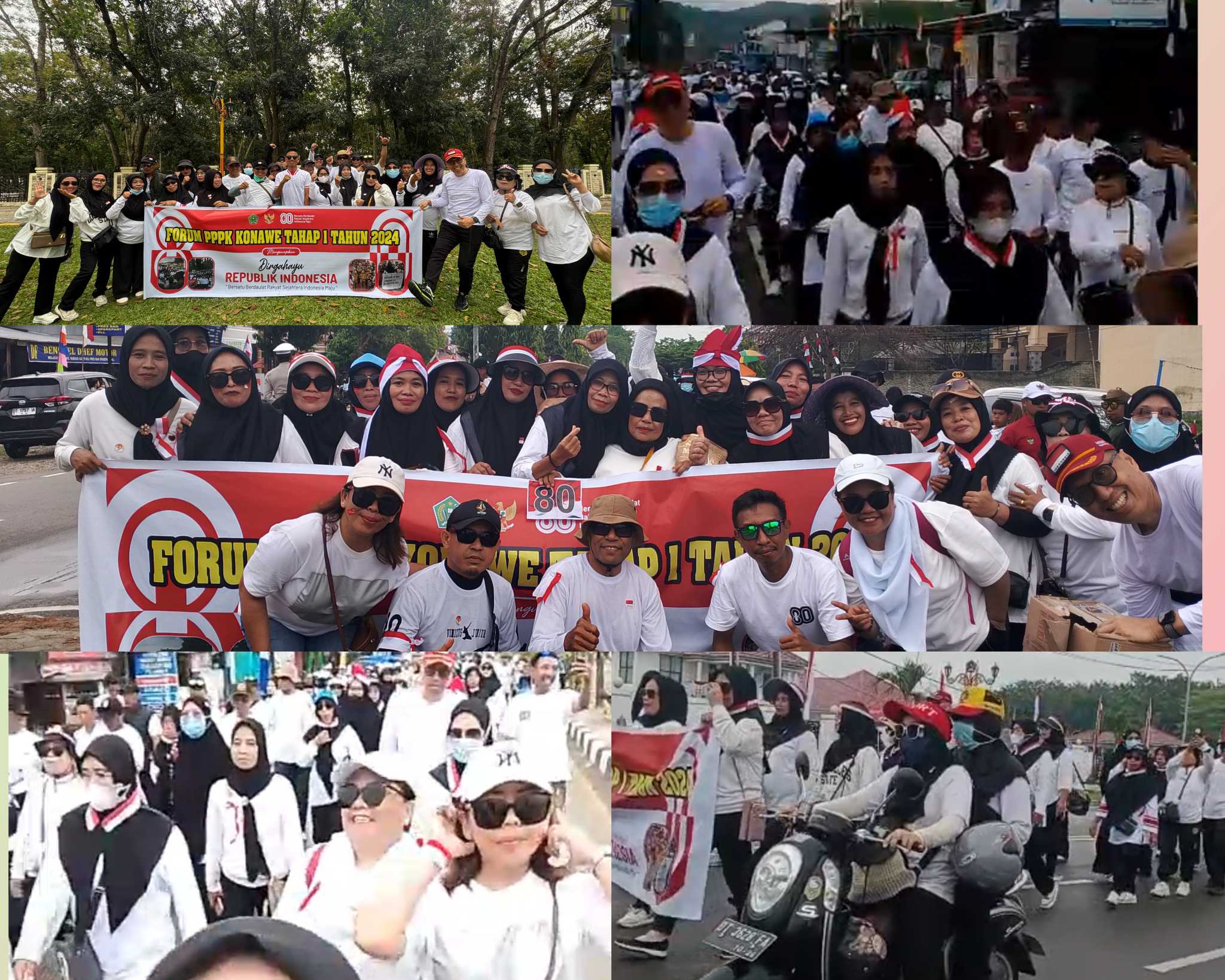 Anoapos.com | Konawe – Wujud semangat nasionalisme, Forum Pegawai Pemerintah dengan Perjanjian Kerja (PPPK) Konawe tahap I tahun 2024 mengikuti kegiatan devile dalam rangka memperingati Hari Ulang Tahun (HUT) Republik Indonesia ke-80 pada Jumat sore (08/08/2025).