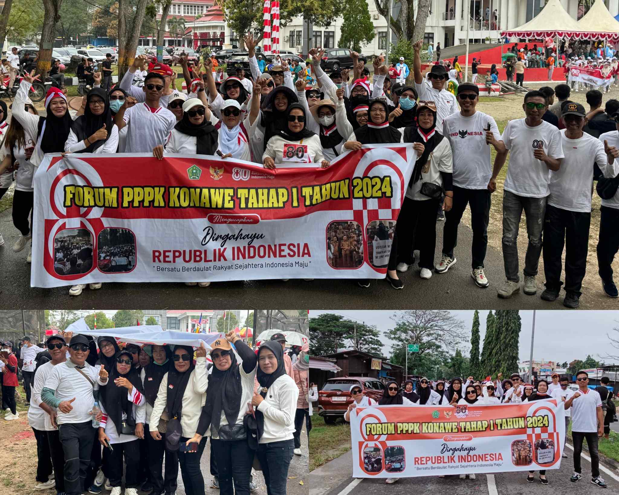 “Kami bangga bisa ikut serta dalam perayaan HUT RI ke-80 tahun 2025. Ini bukan hanya ajang perayaan, tetapi juga momentum untuk menunjukkan bahwa Forum PPPK Konawe Tahap I 2024 siap berkontribusi lebih besar bagi kemajuan daerah dan negara Indonesia,” ungkapnya.