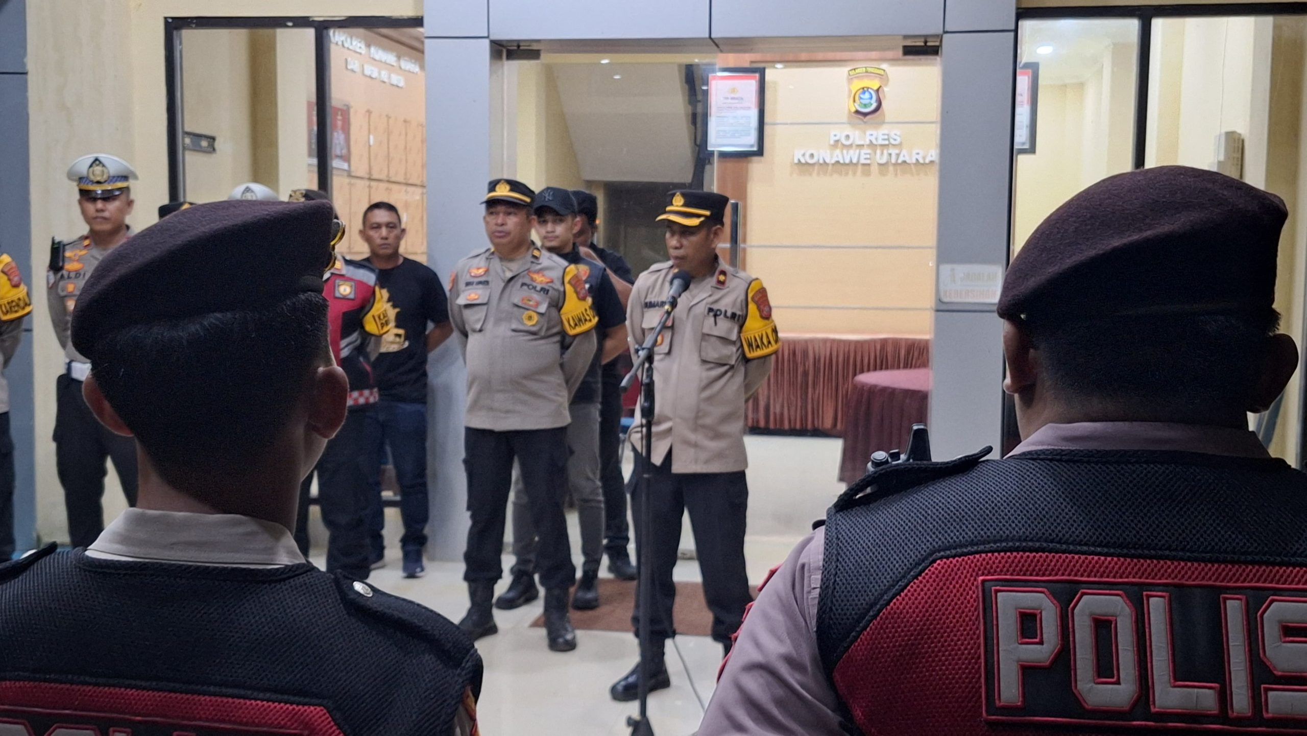 Kepala Kepolisian Resor (Kapolres) Konawe Utara, AKBP Rico Fernanda, S.H., S.I.K., M.H melalui Wakapolres Kompol Sumarso, S.Sos memimpin apel pengecekan personel pengamanan malam takbiran bertempat di Mako Polres Konawe Utara Kecamatan Asera, Minggu (30/03/2025).