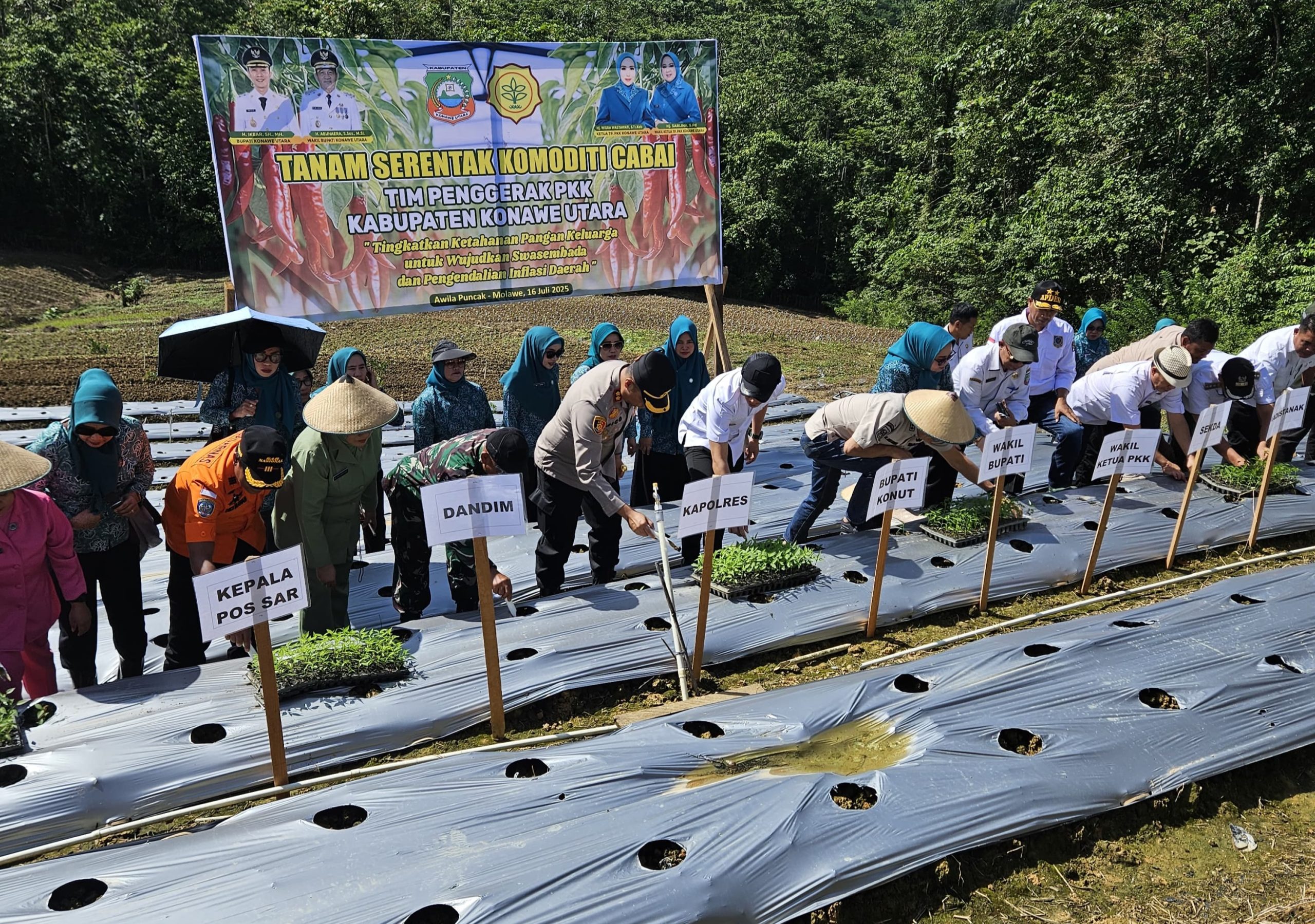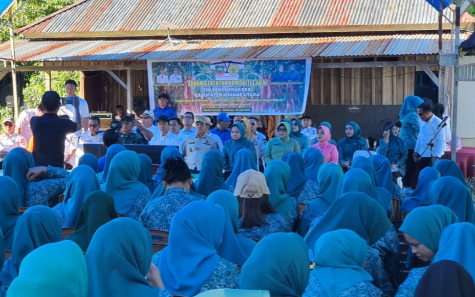 Anoapos.com | Pemerintah Kabupaten Konawe Utara (Konut) Provinsi Sulawesi Tenggara (Sultra) bersama Tim Penggerak PKK Kabupaten Konawe Utara menggelar Gerakan Tanam Serentak Komoditi Cabai pada Rabu (16/07/2025).