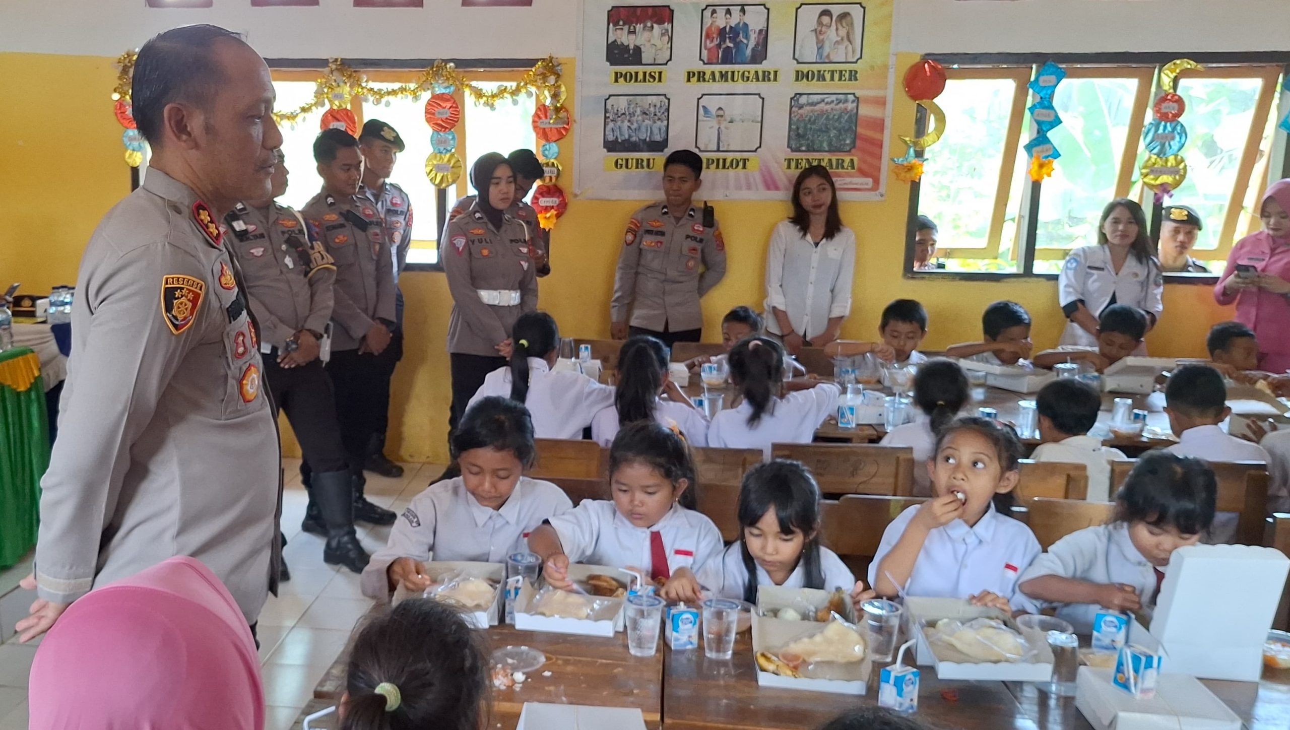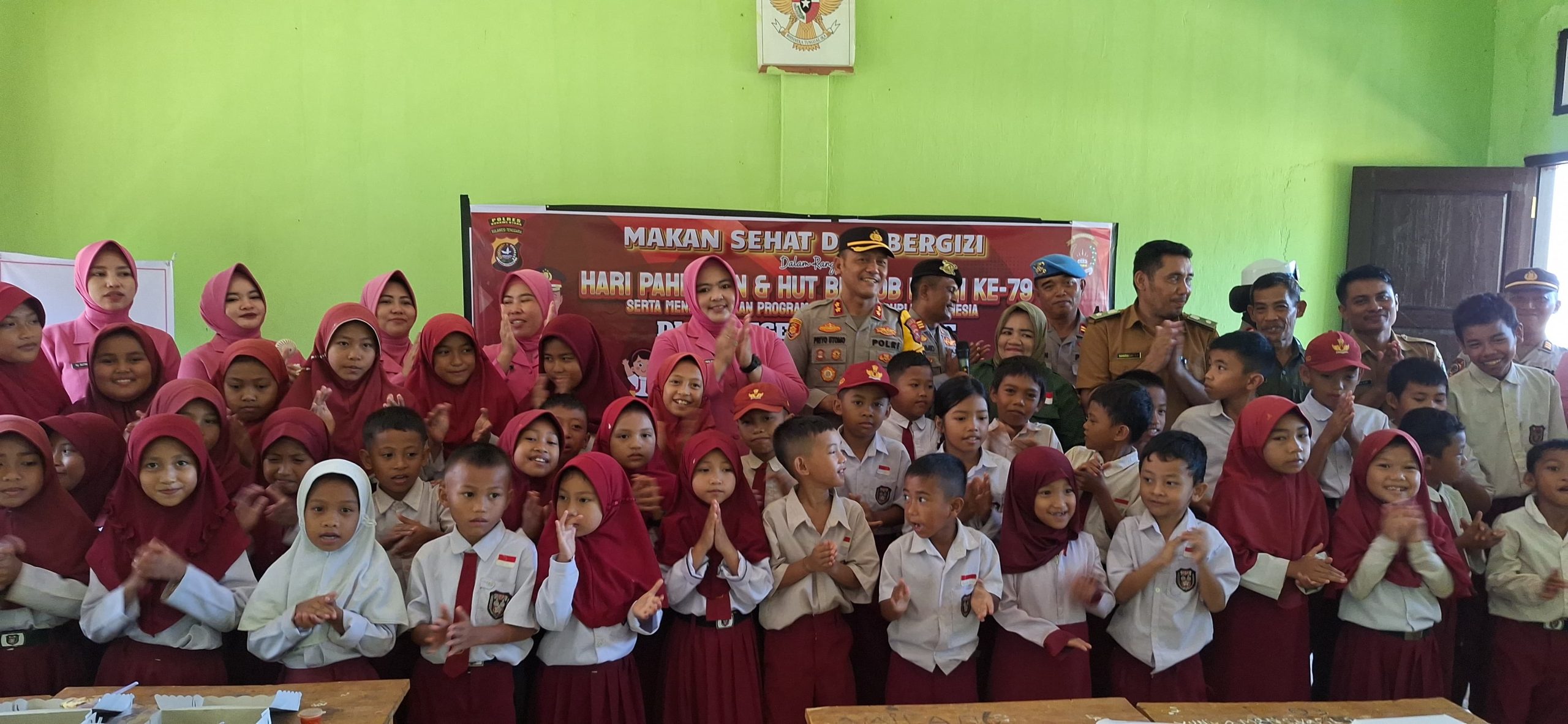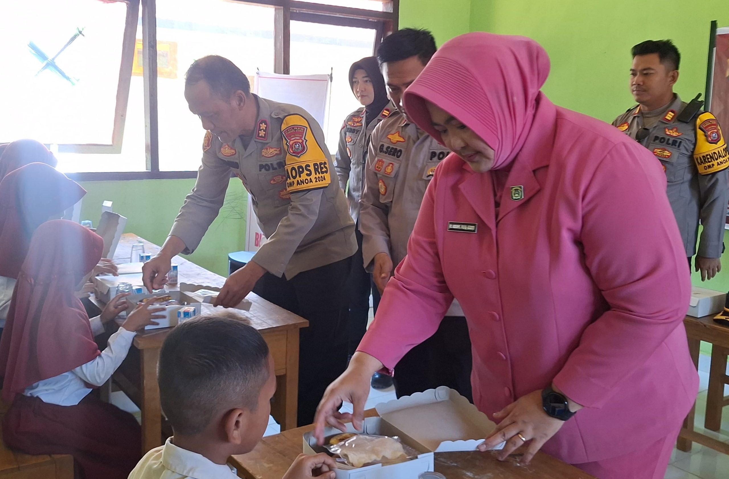 Kepala kepolisian resor (kapolres) konut bersama ketua bhayangkari cabang Ny. Rosana Priyo Utomo memimpin langsung kegiatan makan sehat dan bergizi bertempat di SDN 7 Landawe dan SDN 4 Landawe Kecamatan Landawe Kabupaten Konawe Utara pada Selasa (29/10/2024).
